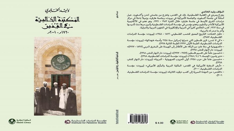 القدس: صدرت مؤخرا الطبعة الثانية من كتاب "المكتبة الخالدية في القدس ١٧٢٠م – ٢٠٠١م" بالعربية والطبعة الأولى من الكتاب باللغة الانجليزية، للمؤلف وليد الخالدي.
