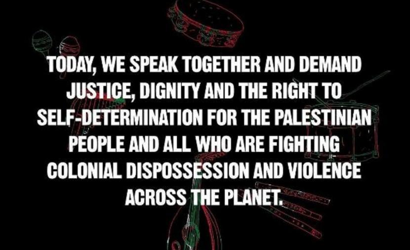 وقال الموسيقيون في رسالتهم: "نحن كموسيقيين لا يمكن أن نبقى صامتين ومن الضروري في هذا الوقت أن نقف مع فلسطين".