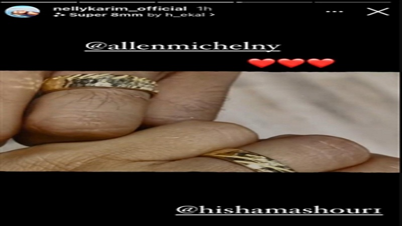 ونشرت كريم مجموعة من الصور عبر "إنستغرام" على أنغام الأغنية الشهيرة "la vie en rose" ، تُظهِر مراحل تصنيع الدبل والتي تمت في أمريكا، وتم كتابة اسم نيللي وهشام على كل من الدبلتين وهو الأمر الذي ظهر في الصورة.