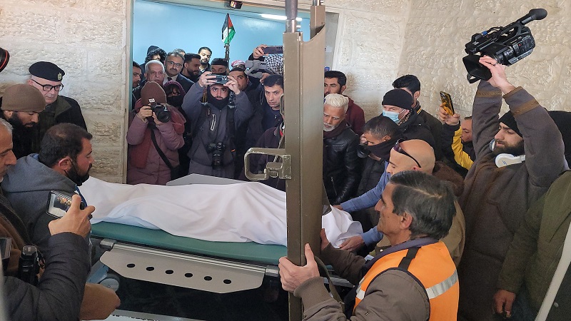 بالصور.. مواطنون ينقلون جثمان الهذالين إلى معهد الطب الشرعي في أبو ديس