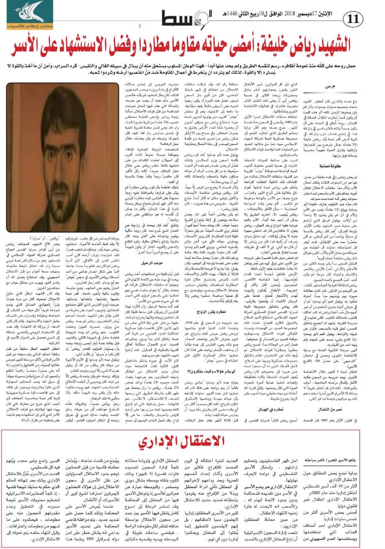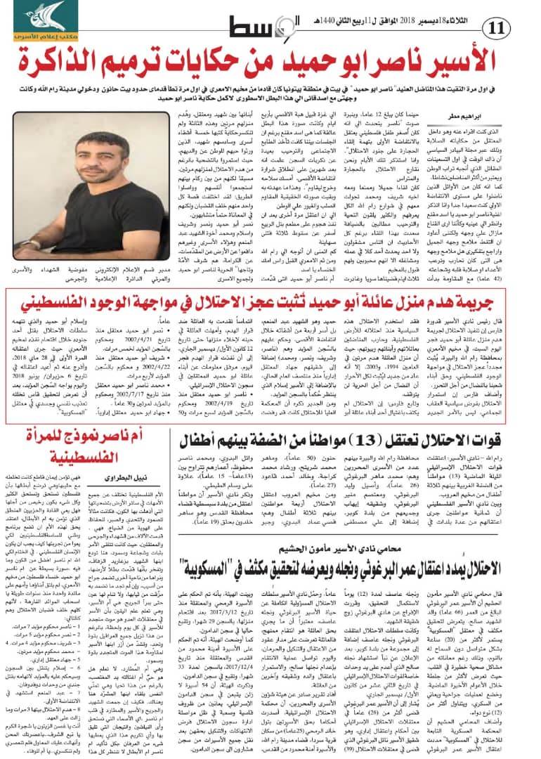 وتابع الملف أخبار الأسرى داخل سجون الإحتلال الظالم، الذين يعانون من القسوة والحرمان والإنتهاكات والتعذيب من قبل المحققين والسجانين الإسرائيليين؛ تلك المعاناة التي تعجز الأقلام عن وصفها، والتي تحتاج إلى اهتمام إعلامي أكبر؛ من شأنه نقل أخبار هؤلاء الأبطال الذين يسطرون آيات من الصبر والبطولة ويعانون في نفس الوقت، وكذلك أخبار ذويهم الذين يتألمون لحرمانهم من أحبتهم.