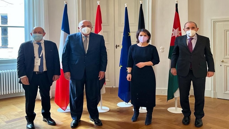 وشارك في الاجتماع، وزير الخارجية وشؤون المغتربين الأردني أيمن الصفدي، ووزير الخارجية المصري سامح شكري، ووزيرة الخارجية الألمانية آنالينا بيربوك، ووزير الخارجية الفرنسي جون إيف لودريان.