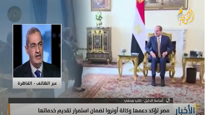 وأكد الرئيس المصري، عبد الفتاح السيسي، دعم بلاده المطلق لوكالة الأمم المتحدة لإغاثة اللاجئين الفلسطينيين "أونروا"، للاستمرار في القيام بدورها في تقديم الخدمات الأساسية والضرورية للاجئين الفلسطينيين، خاصة في مجالي التعليم والصحة.