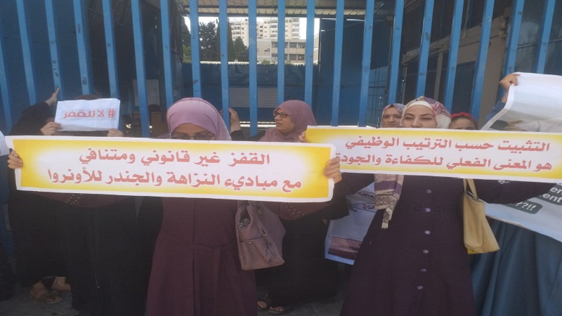 معلمات الشواغر ينظمن وقفة احتجاجية أمام مقر «أونروا» في غزة
