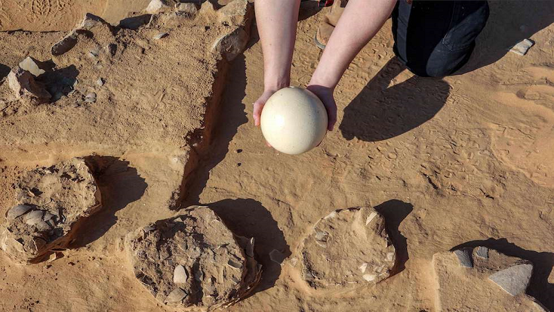 النقب المحتلة: أُعلن، اليوم الخميس، عن اكتشاف ثماني بيضات نعام عتيقة، يصل عمر بعضها إلى 7500 عام، في صحراء النقب «جنوب فلسطين المحتلة».