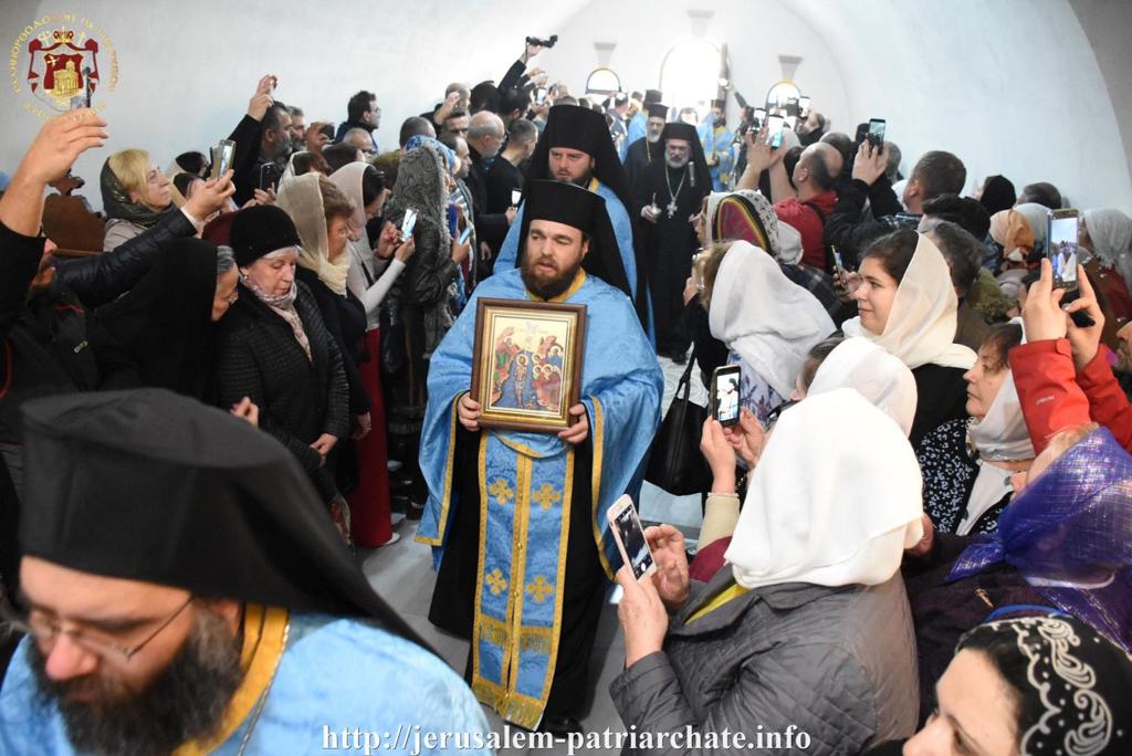 وبحسب البروتوكول المتبع منذ عقود، تقدمت الفرق الكشفية موكب غبطة البطريرك الذي يتكون من كبار كهنة البطريركية من أعضاء المجمع المُقدّس وأخوية القبر المُقدّس ودبلوماسيون وشخصيات دولية ومحلية. وارتفعت الهتافات المُرحبة بغبطته فور وصوله الى المكان المُقدس.