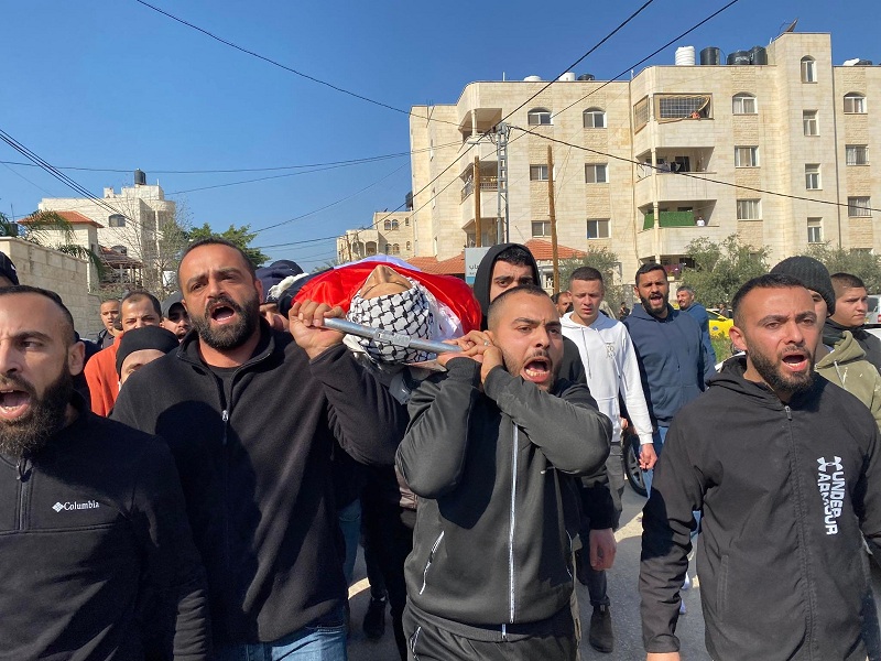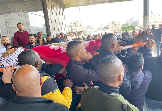 وحمل المشيعون، جثامين الشهداء التسعة، على الأكتاف، من أمام مستشفى جنين الحكومي في مسيرة جابت شوارع المدينة، فيما عم الإضراب الشامل كافة مناحي الحياة.