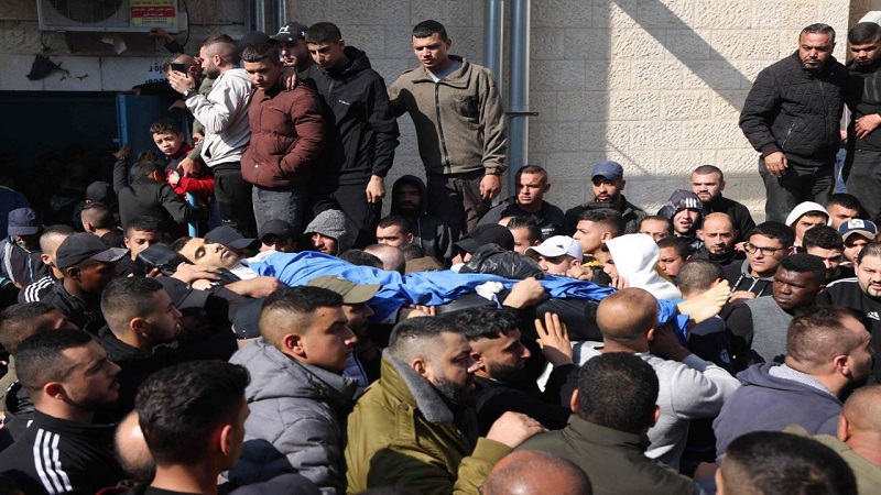 جنين: شارك آلاف المواطنين، في تشييع جثامين شهداء مجزرة جنين إلى مثواهم الأخير.