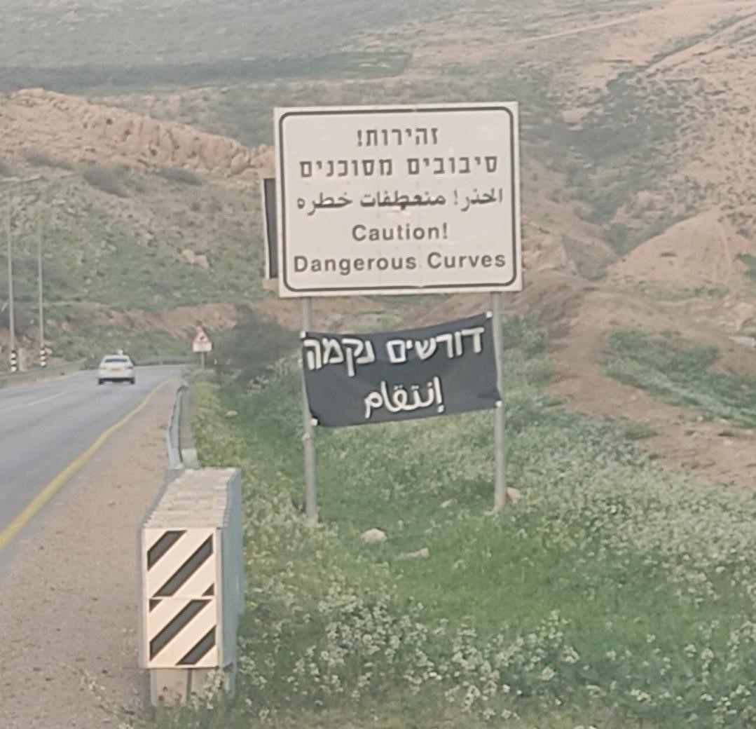 مستوطنون يعلقون لافتة في الأغوار تدعو "للانتقام"