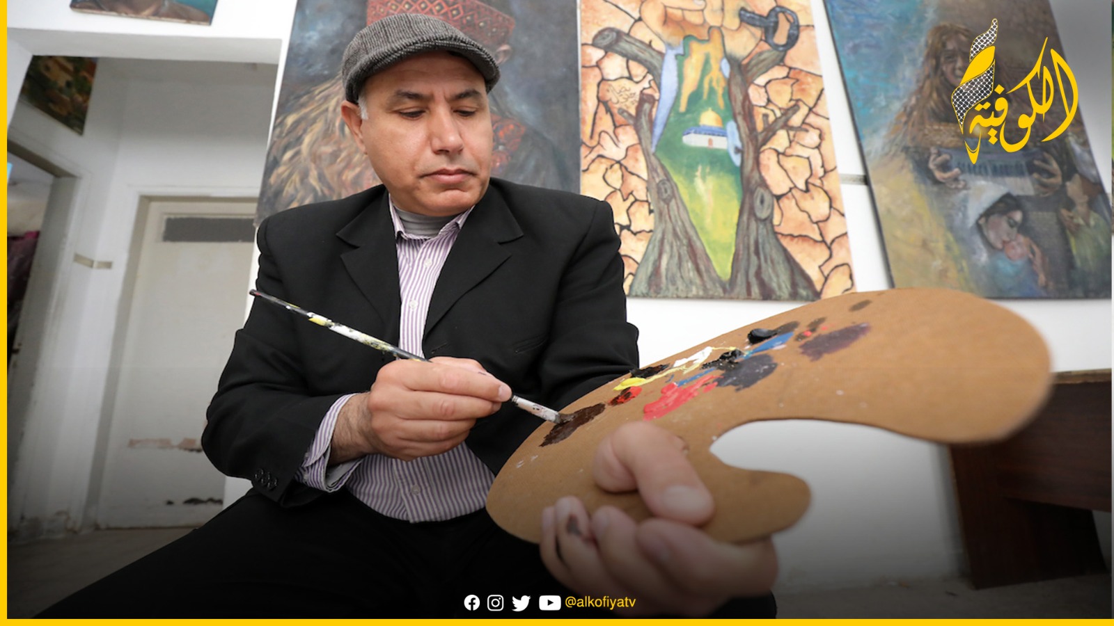 غزة: بإبداع وإتقان، يرسم الفنان التشكيلي جهاد الشرافي (48 عاماً) لوحته الفنية التي تعبر عما في داخله من مشاعر وطنية جياشة، بمرسمه الخاص في مدينة غزة.