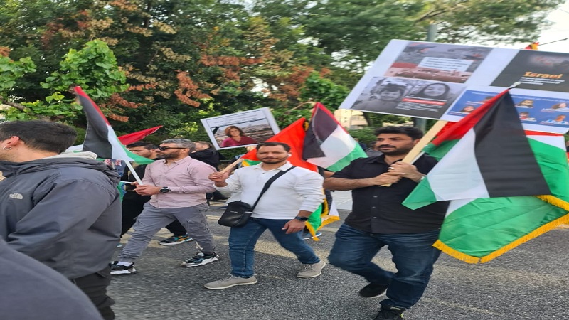 وكانت هتافات أبناء الجالية الفلسطينية  أيضا كلها  تصميم وتمسك بحقهم في العودة إلى وطنهم المسلوب، مؤكدين أن الحقوق لا تسقط بالتقادم، وأن ذاكرة شعبهم وأجيالهم حية ولن تنسى ولن تتنازل مهما طال الزمان وبلغت التضحيات.
