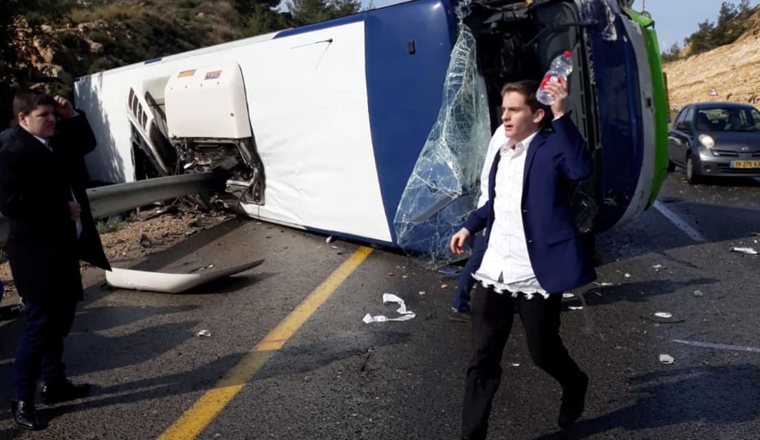 بالصور والفيديو|| إصابة 35 مستوطنا إثر انقلاب حافلة بين القدس و رام الله