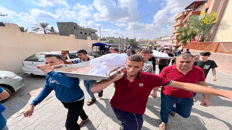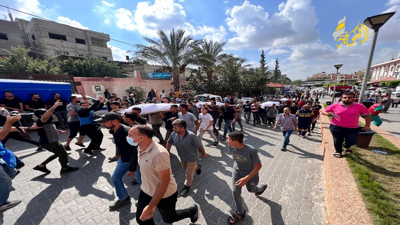 غزة: تشييع جثامين 5 شهداء من عائلة أبو الريش، الذين ارتقوا فجر اليوم في قصف طائرات الاحتلال الحربية على منزلهم في خانيونس.
