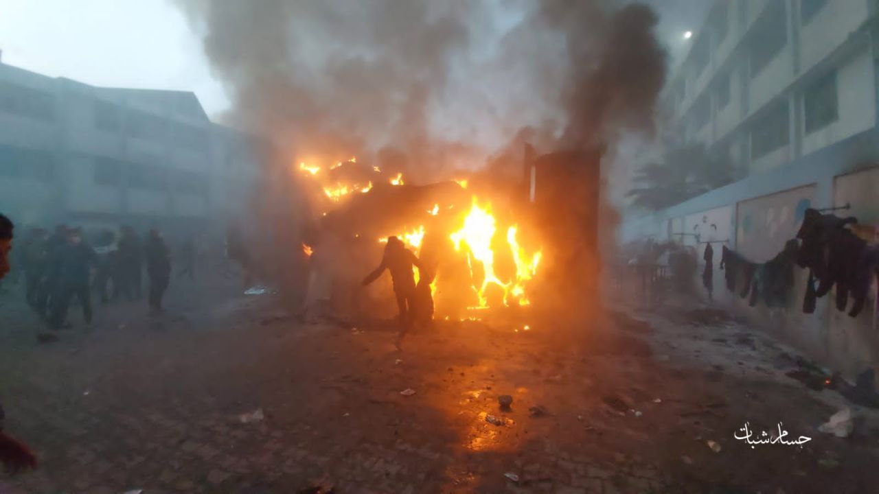 فيديو وصور|| حريق بمحيط مركز للإيواء شمال القطاع جراء قصف الاحتلال