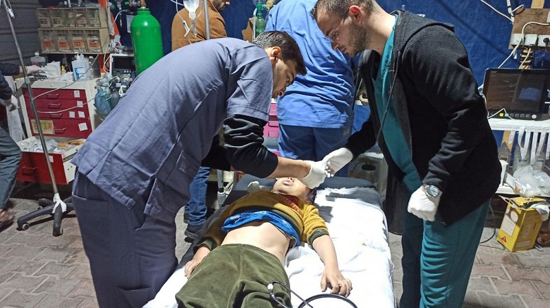 وقال مراسلنا، إن أعداد كبيرة من المصابين جراء قصف الاحتلال لأرض زراعية مأهولة بخيام النازحين في حي القصاص شمال رفح.