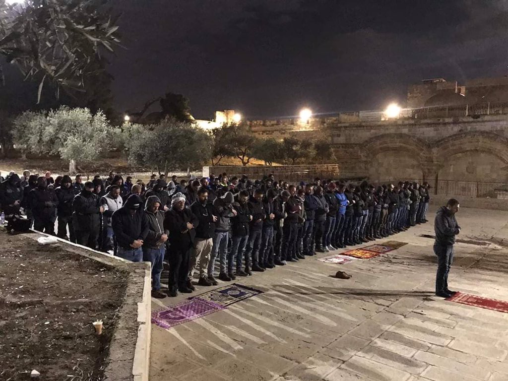 المبعدون عن الأقصى يؤدون صلاة المغرب عند باب الرحمة