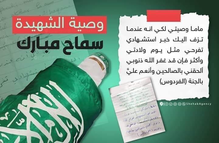 وكانت الشهيدة سماح مبارك قد إرتقت بعد أن أطلق جيش الاحتلال الإسرائيلي النار عليها بالقرب من أحد الحواجز العسكرية، شرق مدينة القدس، بزعم محاولتها تنفيذ عملية طعن قبل 37 يوما.