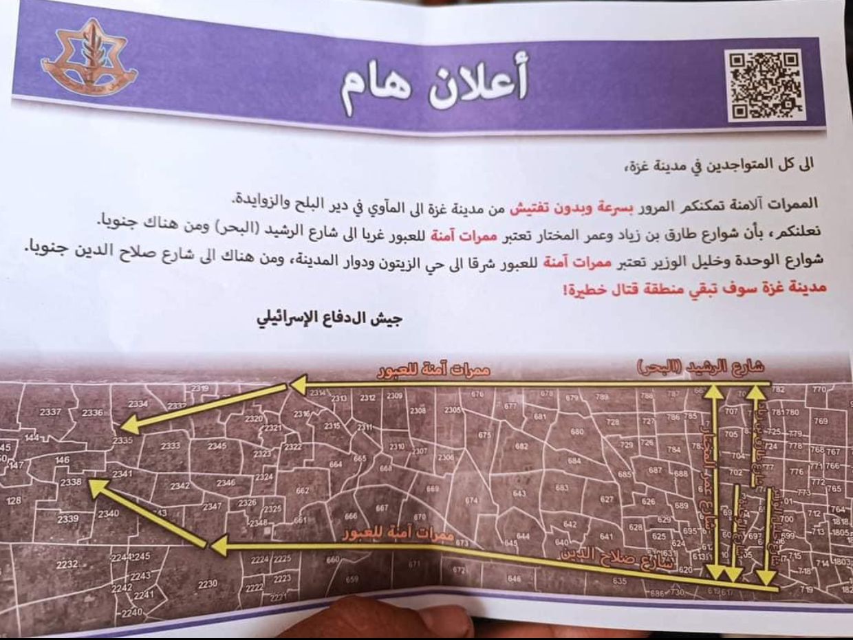 قالت وزارة الداخلية بغزة إن ما نشره الاحتلال الإسرائيلي صباح اليوم من منشورات تطالب المواطنين في مدينة غزة بترك منازلهم والتوجه جنوباً، يأتي في إطار الضغط والإرهاب النفسي الذي يمارسه جيش الاحتلال تجاه المواطنين.