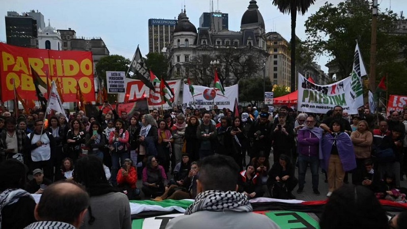 مظاهرات حاشدة في الأرجنتين تضامنًا مع شعبنا ورفضًا للعدوان