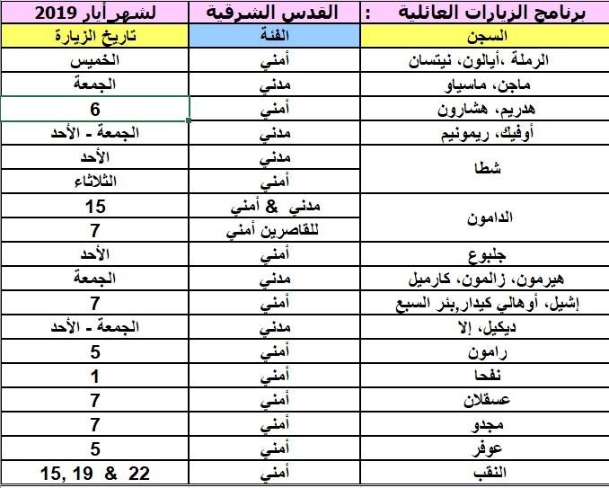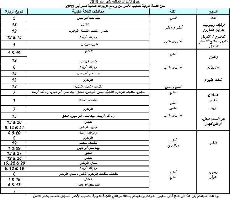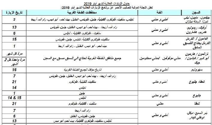 رام الله: كشفت اللجنة الدولية للصليب الأحمر بالأراضي المحتلة، مساء الأربعاء، عن برنامج الزيارات العائلية التي تنظمها اللجنة لشهر أيار/ مايو لسكان الضفة الغربية والقدس.