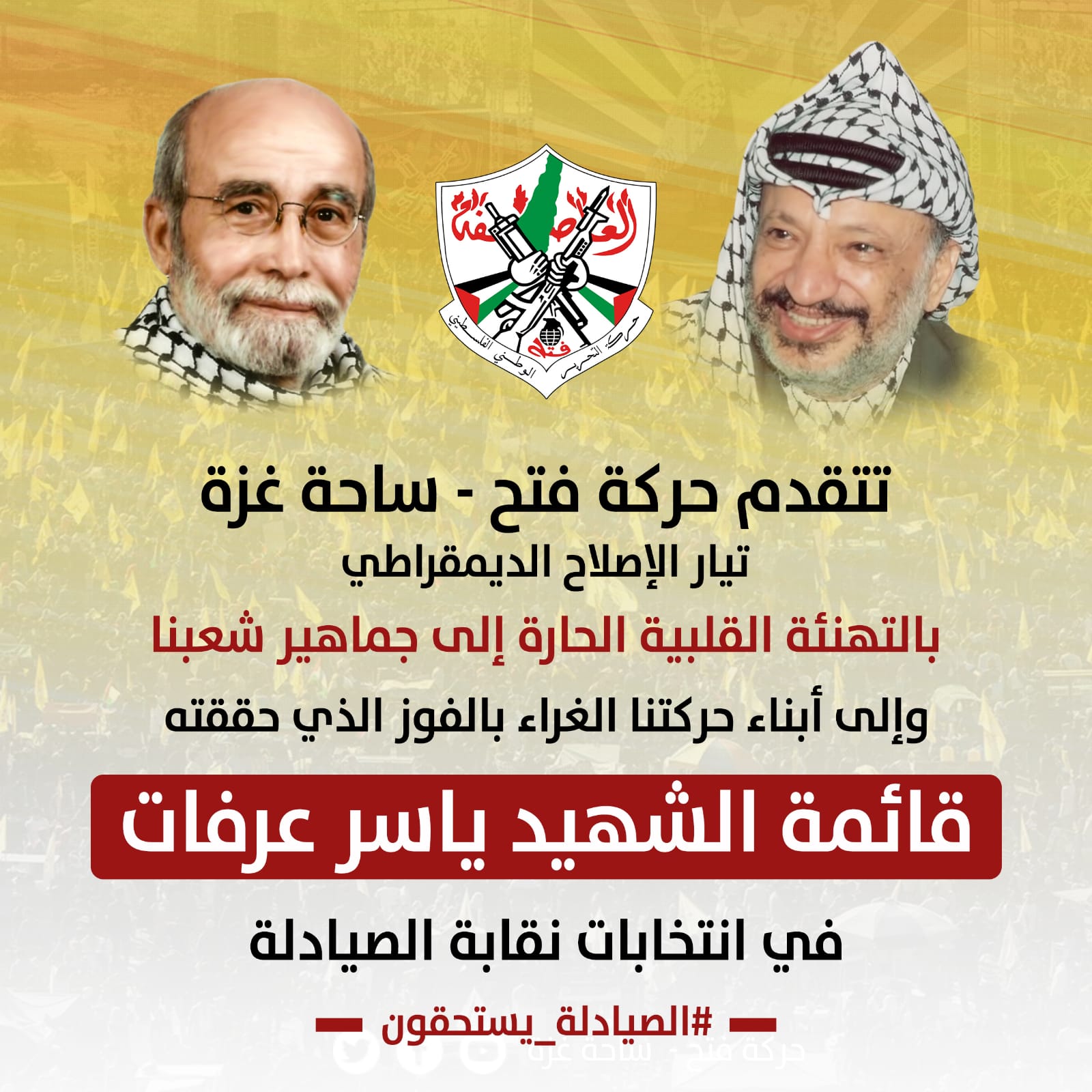 إصلاحي فتح يهنيء صيادلة غزة بنجاح العرس الانتخابي