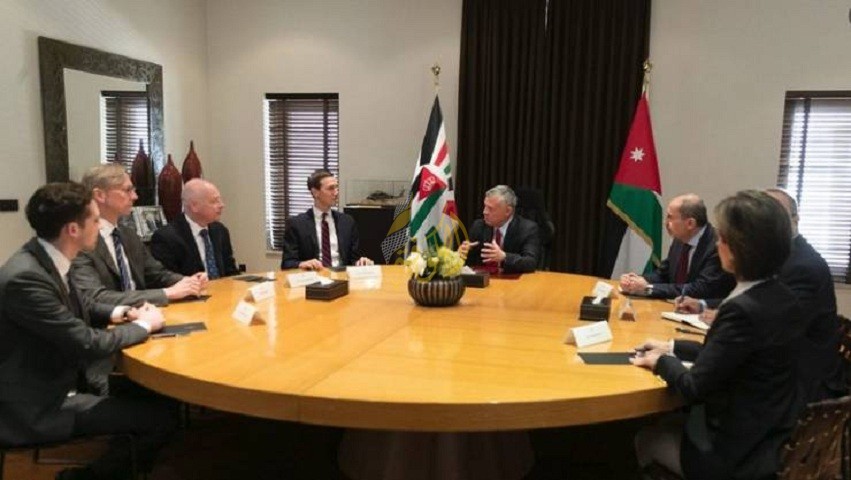 عمان: بحث العاهل الأردني الملك عبد الله الثاني مع جاريد كوشنير كبير مستشاري الرئيس الأمريكي، المستجدات الإقليمية، والجهود المبذولة لحل الصراع الفلسطيني الإسرائيلي.