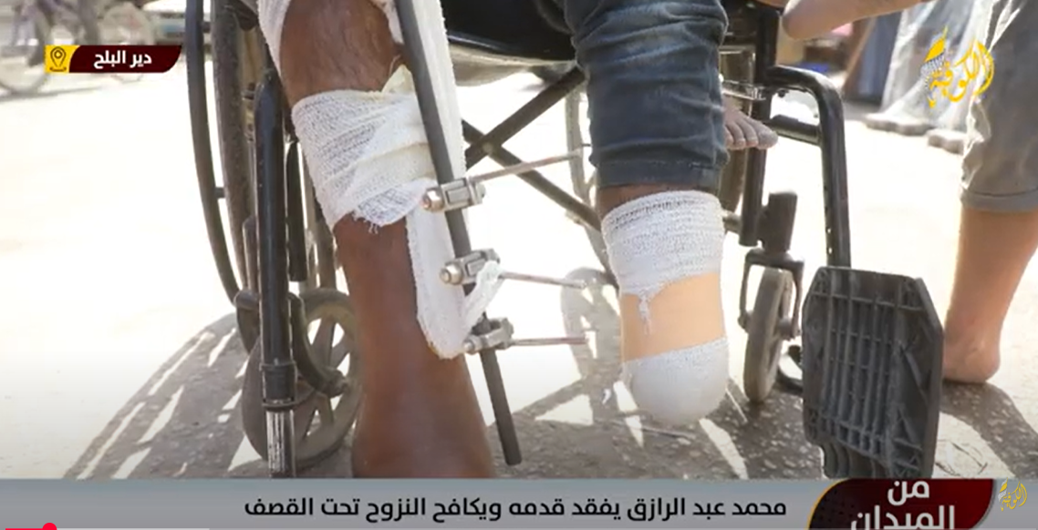 محمد عبد الرازق يفقد قدمه ويكافح النزوح تحت القصف