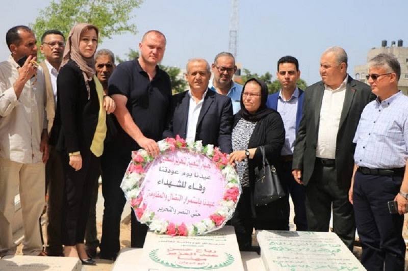بالصور|| وفد من الجبهة الشعبية بغزة يضعوا أكاليل الورد على أضرحة الشهداء