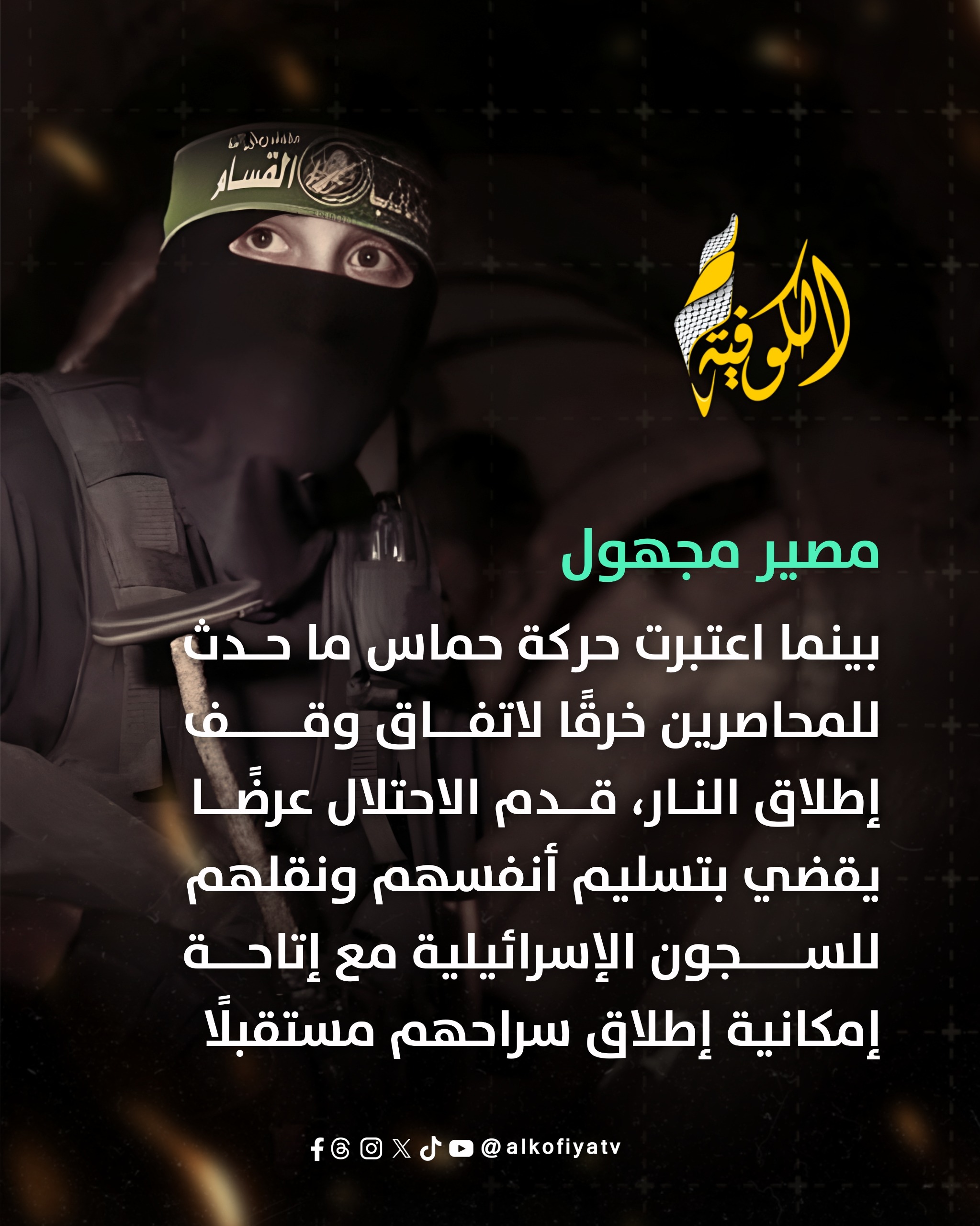 وحملت كتائب عز الدين القسام، الجناح المسلح لحركة حماس، الاحتلال الإسرائيلي مسؤولية أي اشتباك يقع مع عناصرها العالقين في مدينة رفح.