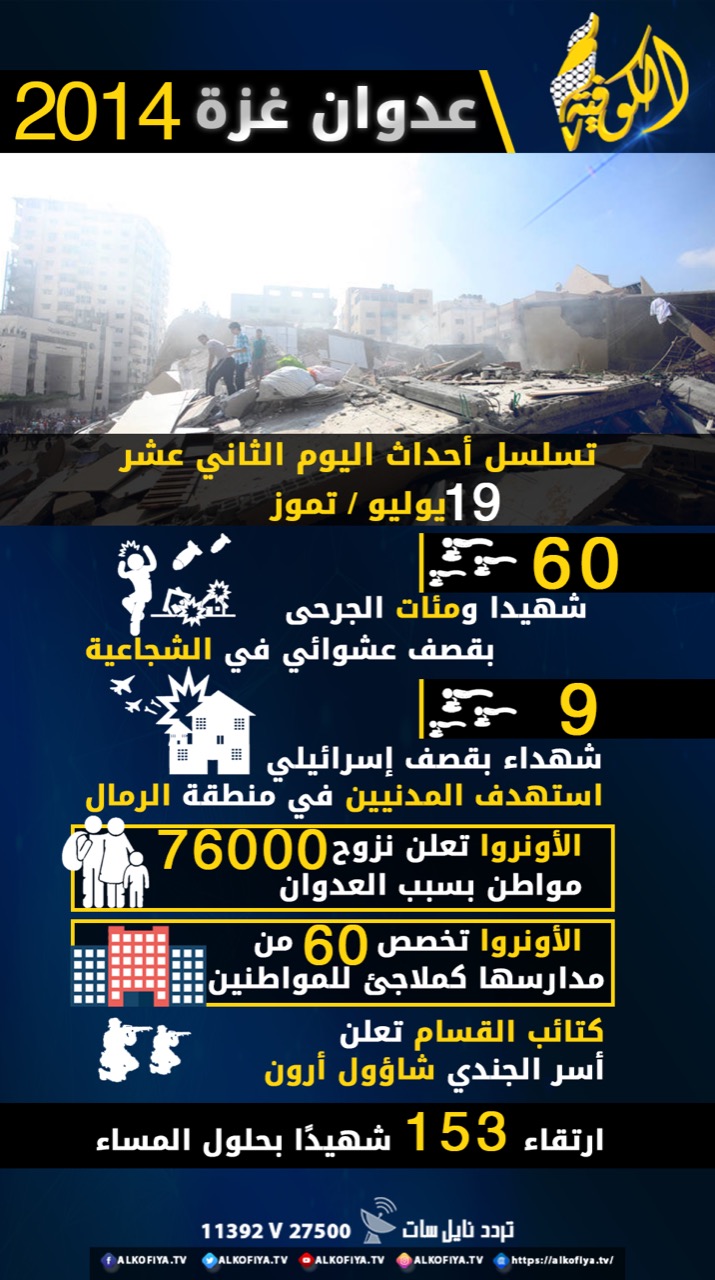 عدوان غزة 2014.. تسلسل أحداث اليوم الثاني عشر