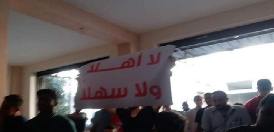 كما حمل شباب العائلة لافتات تحمل "لا أهلا ولا سهلا".