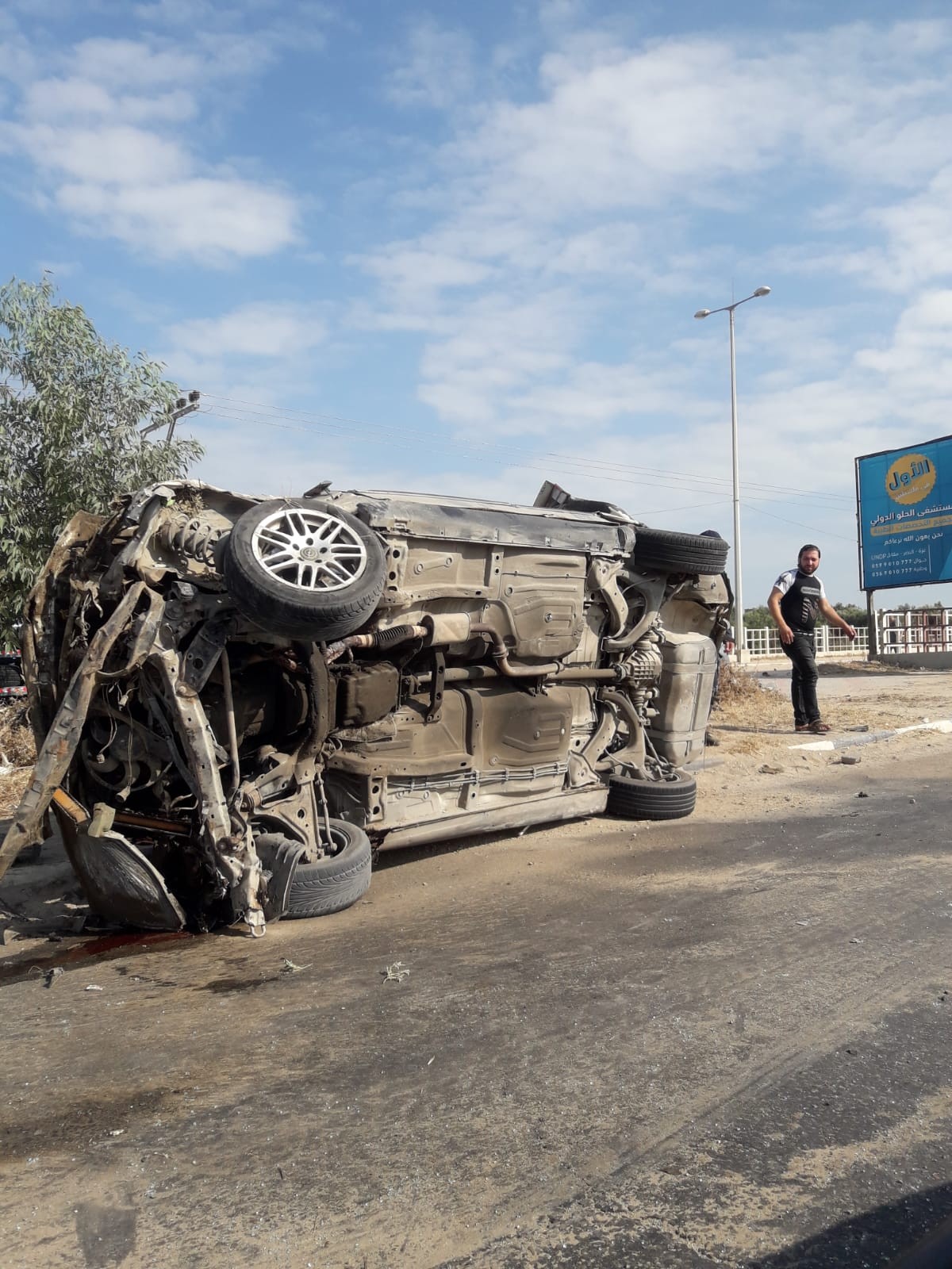 بالصور|| مصرع مواطن وإصابة نجله بجراح خطيرة جراء حادث سير وسط القطاع