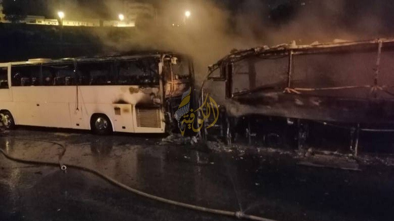 بيت لحم: شب حريق فجر اليوم السبت، في حافلتين أثناء وجودهما أمام فندق بشارع الكركفة، في مدينة بيت لحم، جنوب الضفة الغربية المحتلة.