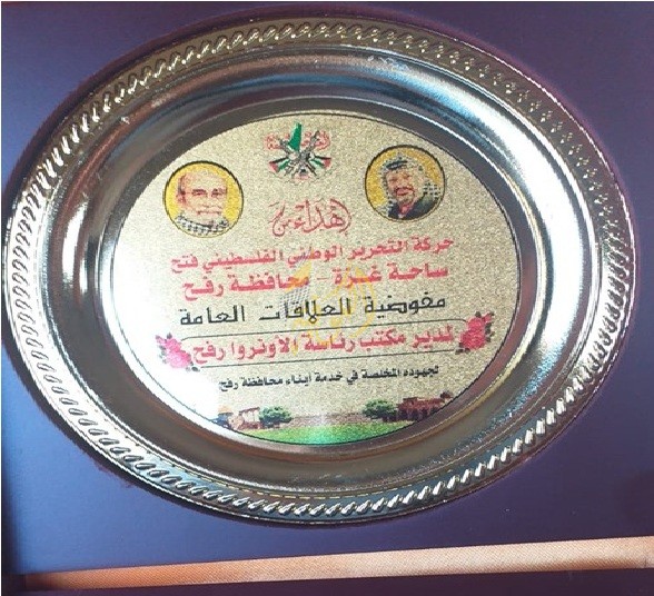 وفي نهاية اللقاء، قدمت وفد حركة فتح درع تكريمي، تقديراً لدور منظمة الأونروا في خدمة اللاجئين الفلسطينيين.