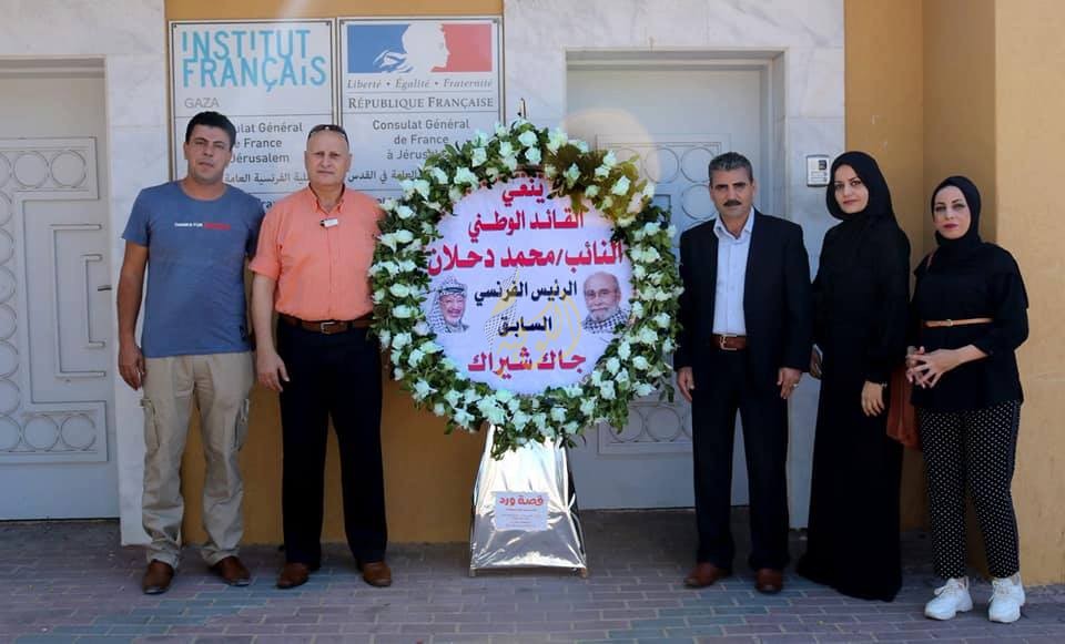 وزار الوفد الفتحاوي، مكتب القنصلية الفرنسية غربي مدينة غزة، وقدم التعازي بوفاة شيراك، نيابة عن قائد تيار الإصلاح الديمقراطي في حركة فتح، النائب محمد دحلان.