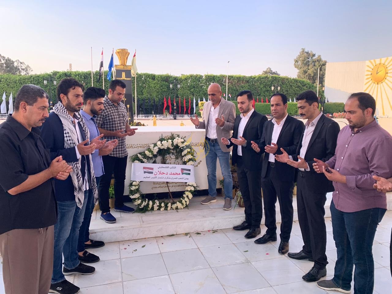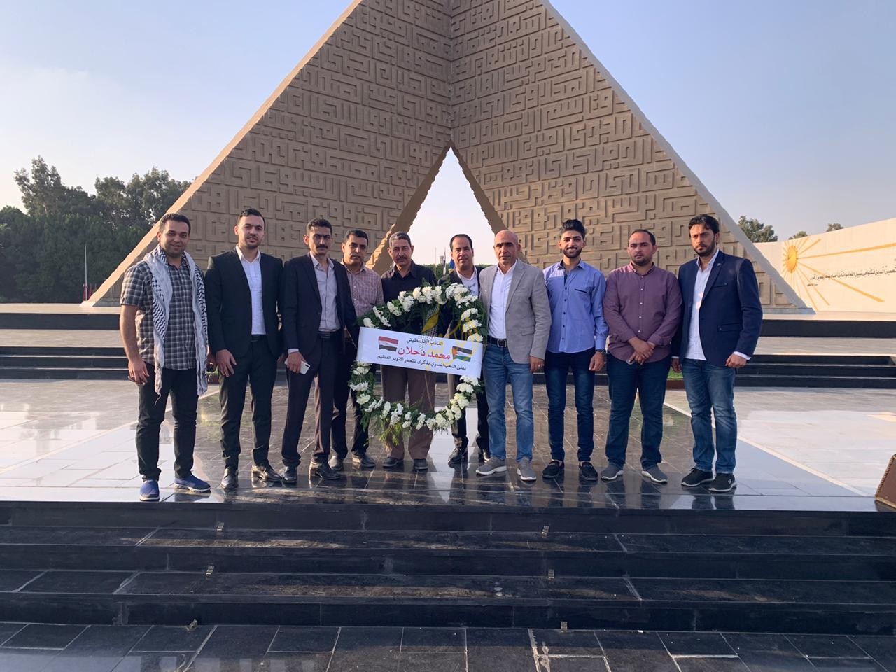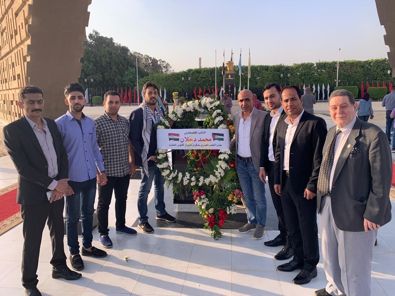 ووضع وفد من قيادة وكوادر التيار نيابة عن قائد التيار النائب محمد دحلان، إكليلاً من الزهور على النصب التذكاري للجندي المجهول بمدينة نصر .