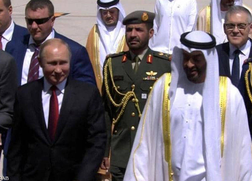 وكان في استقبال بوتن ولي عهد أبوظبي، الشيخ محمد بن زايد آل نهيان، حيث من المقرر أن يبحث الزعيمان مجمل التطورات على الساحتين الإقليمية والدولية، والقضايا والملفات ذات الاهتمام المشترك.