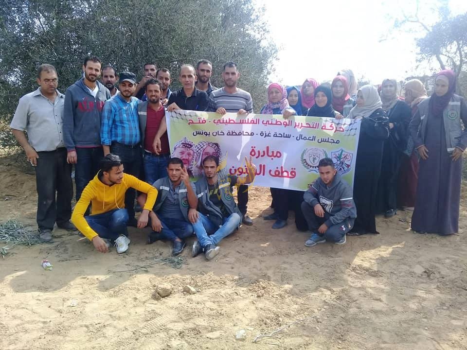 وقال أمين سر مجلس العمال في محافظة خانيونس، نائل العمور: "فعالية قطف ثمار الزيتون تهدف لتعزيز روح التطوع لدى الكادر الفتحاوي، والوقوف بجانب المزارع الفلسطيني في ظل الأوضاع الاقتصادية المتردية في قطاعنا الحبيب".