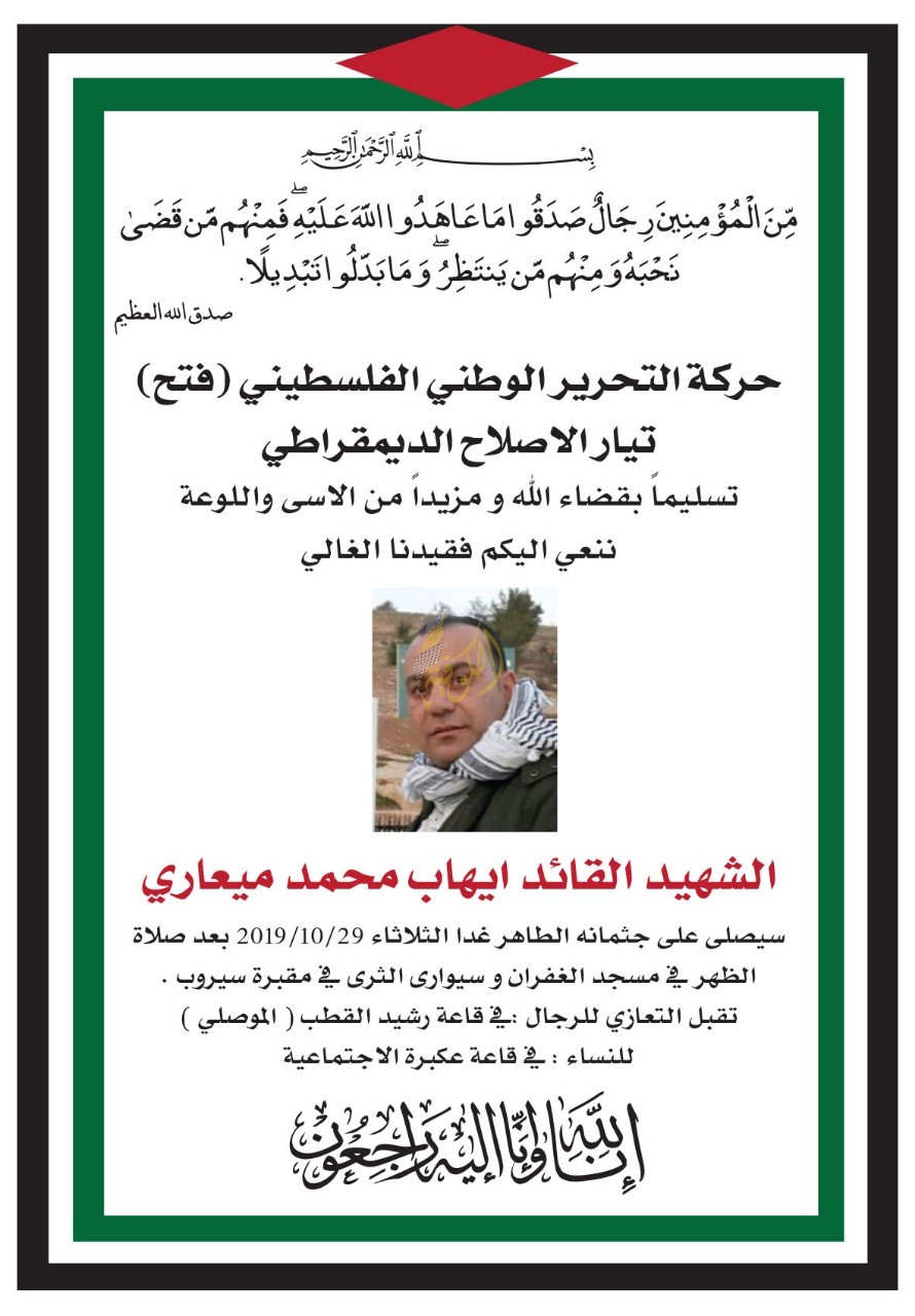 وكان الفقيد إيهاب ميعاري "أبو خالد" توفي أمس الإثنين، بعد معاناة مع المرض.