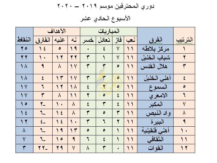 القدس المحتلة: أسدل الستار عن مرحلة ذهاب دوري المحترفين باستكمال مباراة ثقافي طولكرم والامعري التي جرت يوم الاحد وتوقفت بسبب انقطاع التيار الكهربائي من مناطق واسعة من طولكرم و منها ملعب الشهيد جمال غانم حيث تجري المباراة.