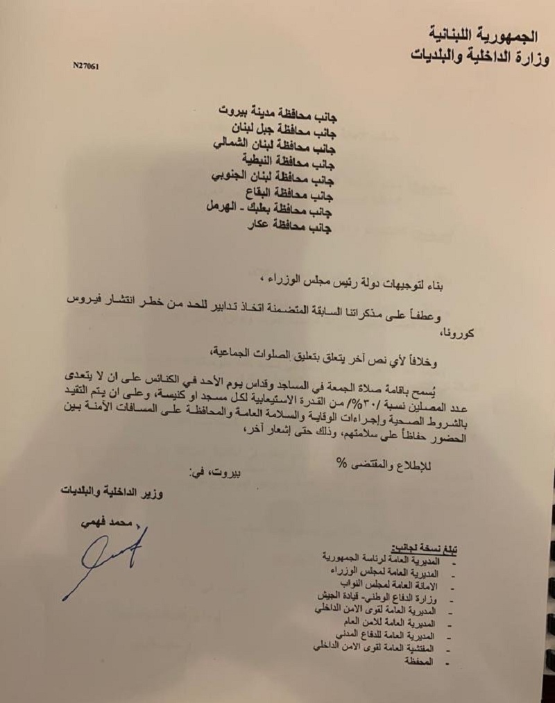 وأدناه مذكرة أصدرها وزير الداخلية والبلديات اللبناني العميد محمد فهمي بشان الموضوع.