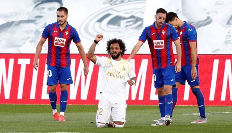 وقلص بيدرو بيجاس الفارق وسجل هدف إيبار الوحيد بعد تسديدة خدعت الحارس تيبو كورتوا في مباراة أقيمت دون حضور مشجعين.