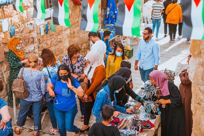وجميع المنتجات في السوق، صناعة محلية ومشغولات يدوية تراثية وزراعية، من بلادنا التي تحافظ على تراثنا وهويتنا وروايتنا الفلسطينية.