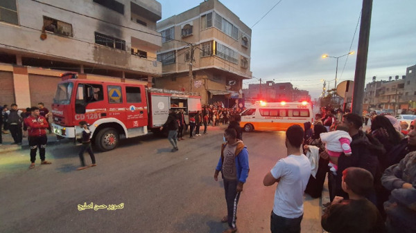 وبحسب المصادر فإن طواقم الهلال الأحمر الفلسطيني تعاملت مع أربع إصابات بالاختناق، وجرى تحويلها إلى مجمع ناصر الطبي؛ جراء الحريق الذي اندلع في شقة سكنية وسط المحافظة.