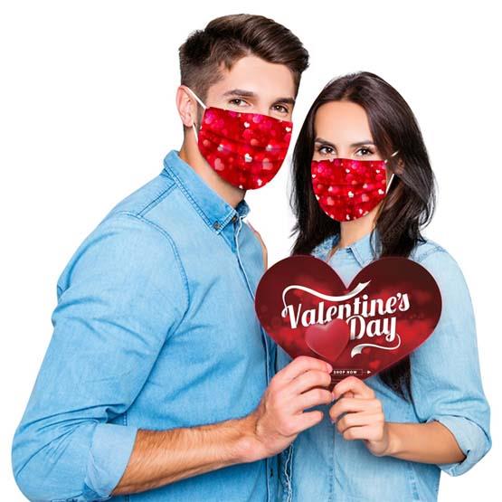 تم تصميم كمامات تضيف مزيدا من الأجواء الرومانسية في عيد الحب، حيث تظهر وهي مطبوع عليها "قلوب"، وعبارات مثل، happy valentine day، وتناسب الملابس غير الرسمية.