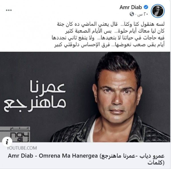 ونشر دياب في حسابه الرسمي على تطبيق التواصل الإجتماعي فيس بوك، مقطعا من أغنية "عمرنا ما هنرجع" و التي تضمنها ألبوم "أحلى وأحلى" الصادر في عام 2016.