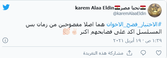 القاهرة: دشن عدد كبير من مستخدمى موقع التواصل الاجتماعى تويتر هاشتاغ الاختيار فضح الأخوان، "بعد عرض الحلقة الجديدة من مسلسل الاختيار 2".