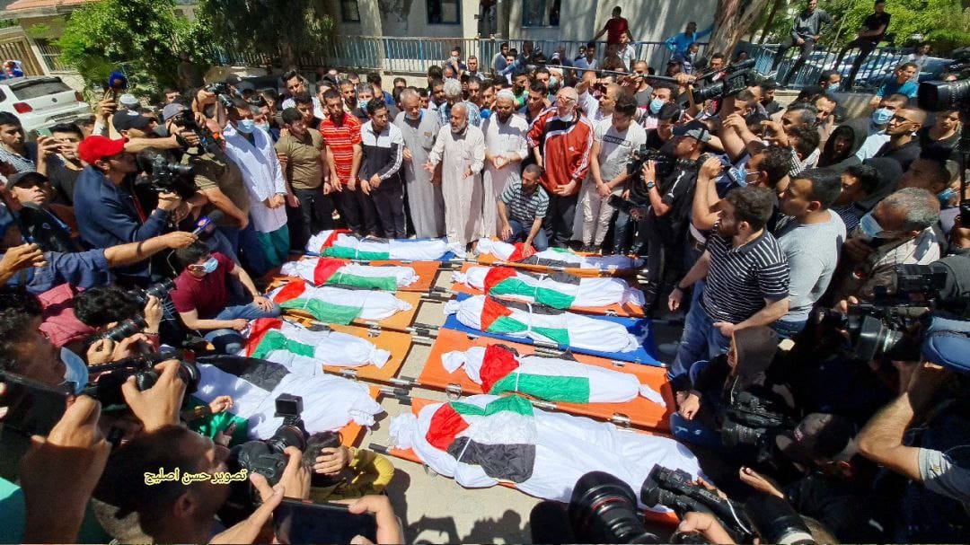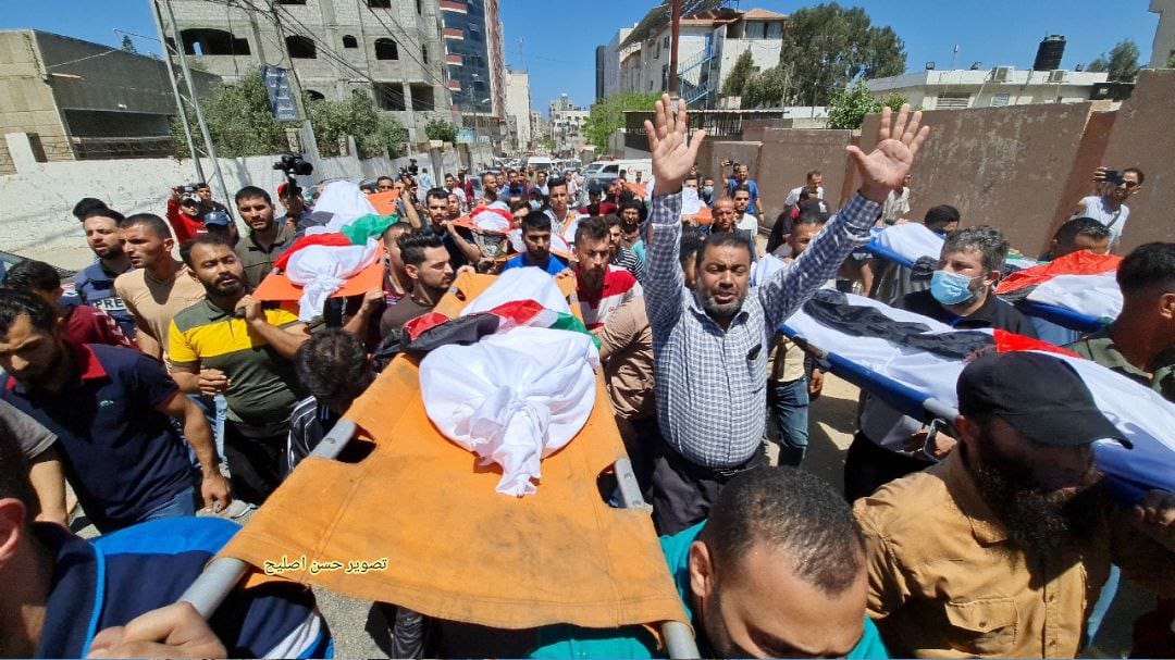غزة: شيع الآلاف من أهالي مخيم الشاطئ، اليوم السبت، جثامين 10 من أفراد عائلتي أبو حطب والحديدي، وهم سيدتين و8 أطفال، والذين استشهدوا جراء جريمة الحرب البشعة التي ارتكبتها قوات الاحتلال بقصف منزلهم في مخيم الشاطئ غرب غزّة فجر اليوم.