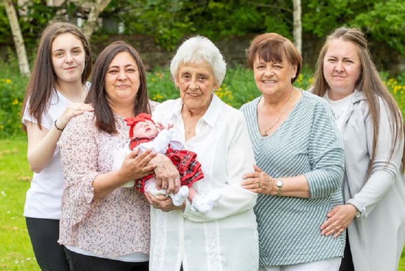 وكالات: احتفلت سيدة عجوز تبلغ من العمر 86 عامًا بأصغر حفيدة لها والتي تبلغ من العمر أسبوعين خلال جلسة تصوير لها مع بناتها.