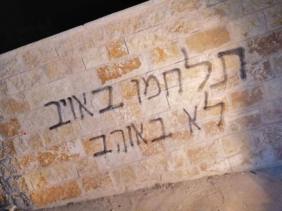 ومن بين الشعارات المعادية التي كتبها المستوطنون "كفى للإرهاب العربي".
